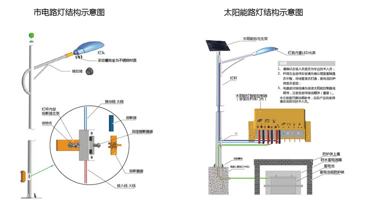 燈桿:優(yōu)質鋼材,熱鍍鋅處理,燈體表面噴塑(顏色可定制)