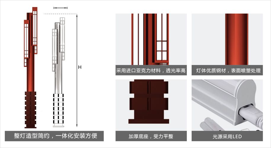 材質:燈體優(yōu)質鋼材,表面噴塑處理透光罩采用進口亞克力材料,透光率高。