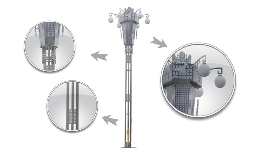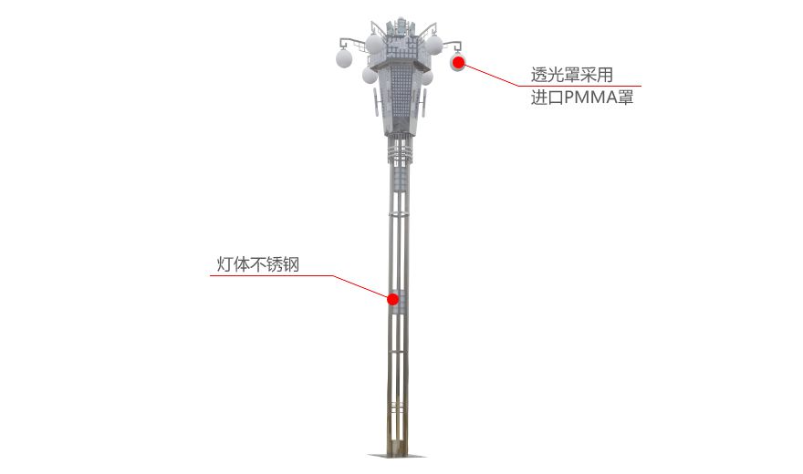 特別說(shuō)明:基礎(chǔ)預(yù)埋件必須按本公司要求制作。檢修口內(nèi)安裝燈具專用熔斷器及接線段子。安裝時(shí)必須保證燈體地線安全接地