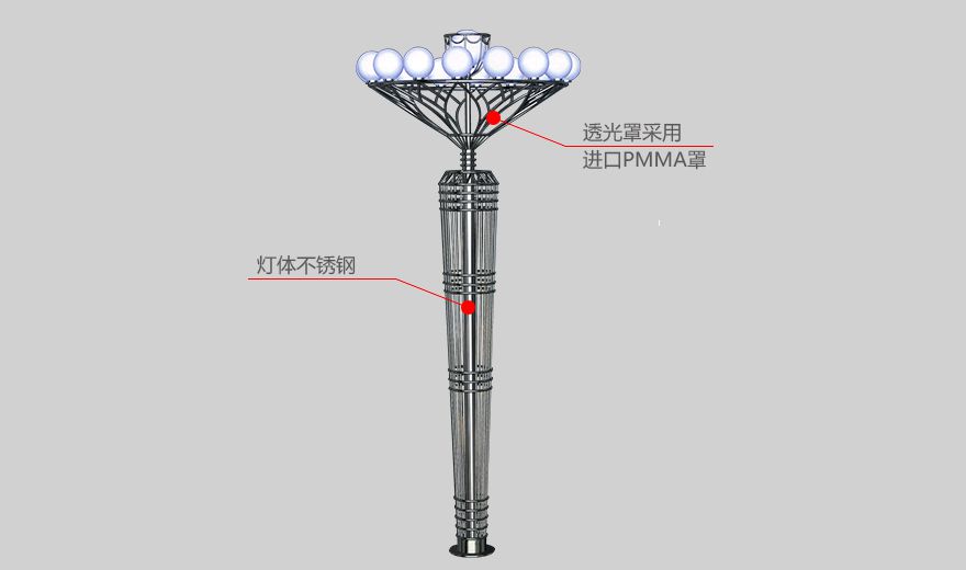 "產(chǎn)品材質(zhì):燈體優(yōu)質(zhì)鋼材,表面噴塑處理,造型激光雕刻