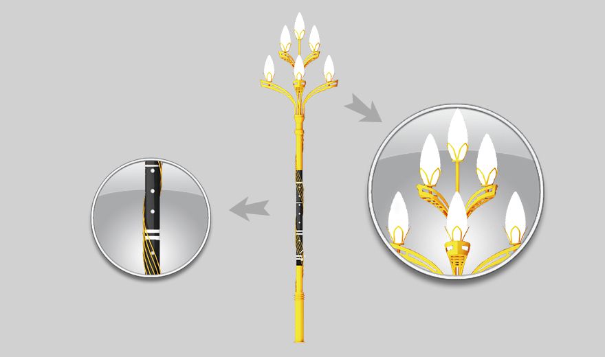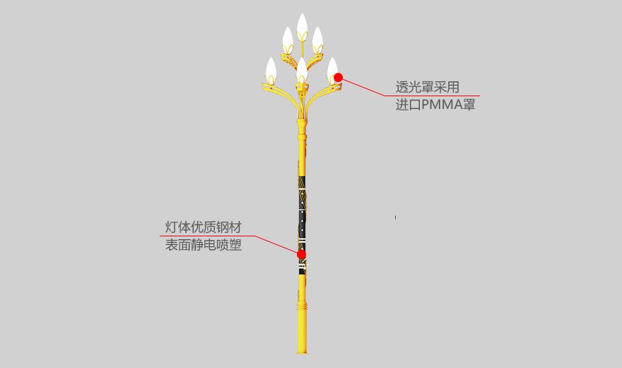 "產(chǎn)品材質(zhì):燈體優(yōu)質(zhì)鋼材,表面噴塑處理,造型激光雕刻